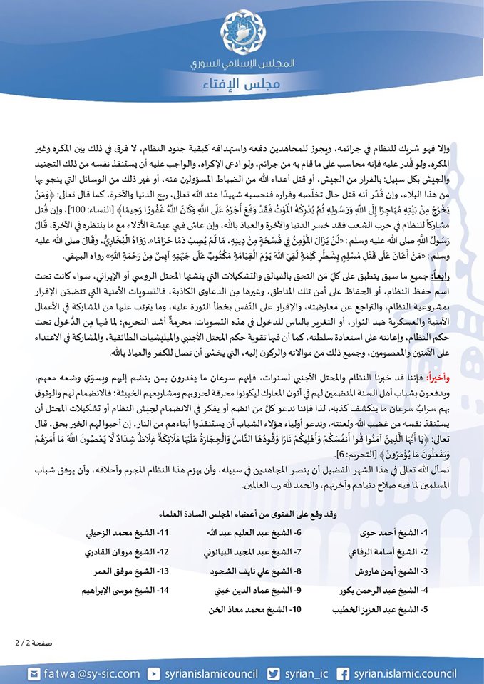 وقد وقع على الفتوى من أعضاء المجلس السادة العلماء