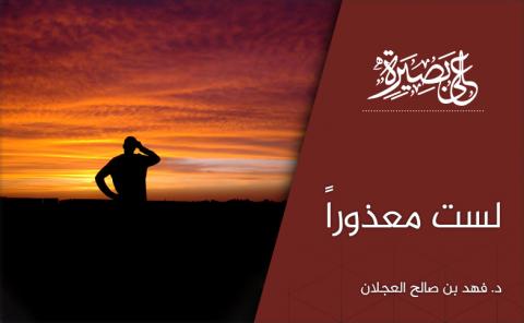 "لستَ معذورًا".. شعارٌ يجبُ أنْ يَضعه المسلم أمام نَاظِريه، يقوّي بوصلة التفكير في عقله إلى دائرة العَمل الذي يقع تحت مسؤوليته، فلا يغفله الانهماك في الحديث عمّا لا يجب عليه في ترك النّظر في ما يجب عليه، ولا تأمل ما يرتكبه الآخرون عن تدبّر حال نفسه وما يجب عليها وما فرّط في القيام بِه، ولا تحرّضه النّزاعات والاختلافات على التفريط في واجبه الشرعيّ الذي سيحاسبه الله عليه.