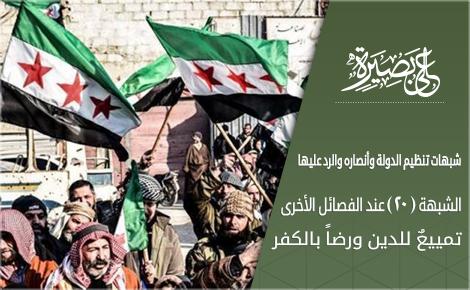 شبهات تنظيم الدولة وأنصاره والرد عليها: الشبهة العشرون: عند الفصائل الأخرى تمييعٌ للدّين ورضاً بالكُفر
