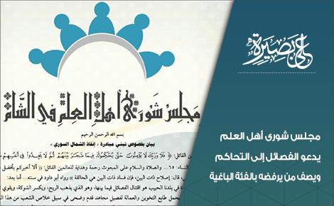 طالب مجلس شورى أهل العلم في الشام جميع الأطراف في الساحة بوقف القتال، والتحاكم إلى شرع الله في كل القضايا الخلافية.
