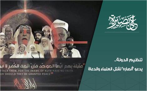 وطالب التنظيم في إصداره على لسان أحد شرعييه "أولئك الذين حاولوا الهجرة إلى دار الإسلام ولم يستطيعوا" بقتل هؤلاء العلماء والدعاة الذين وصفهم بـ "حمير العلم"، قائلاً إن "شرهم لا ينتهي إلا بقتلهم" على حد زعمه.