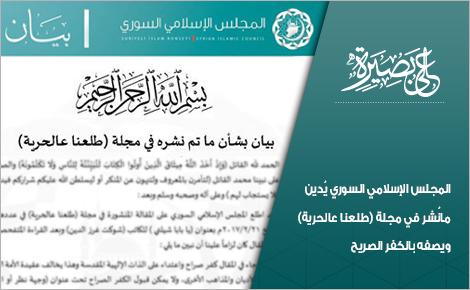 المجلس الإسلامي السوري يدين مانُشر في مجلة (طلعنا عالحرية) ويصفه بالكفر الصريح