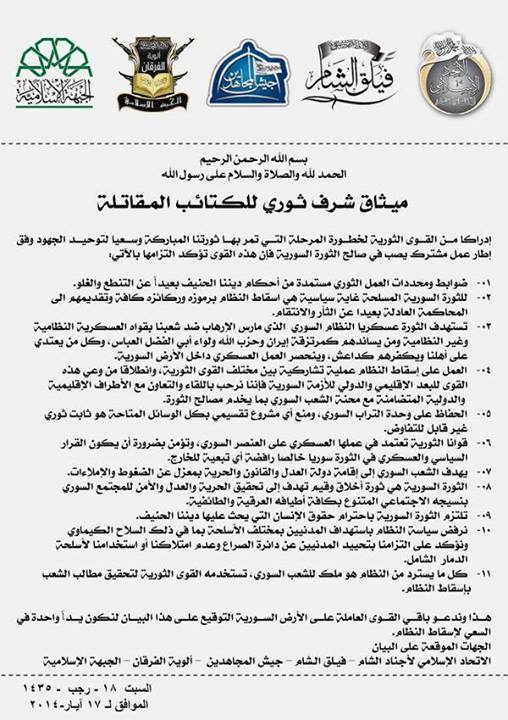 ميثاق شرف ثوري لأهم الكتائب المقاتلة في سوريا