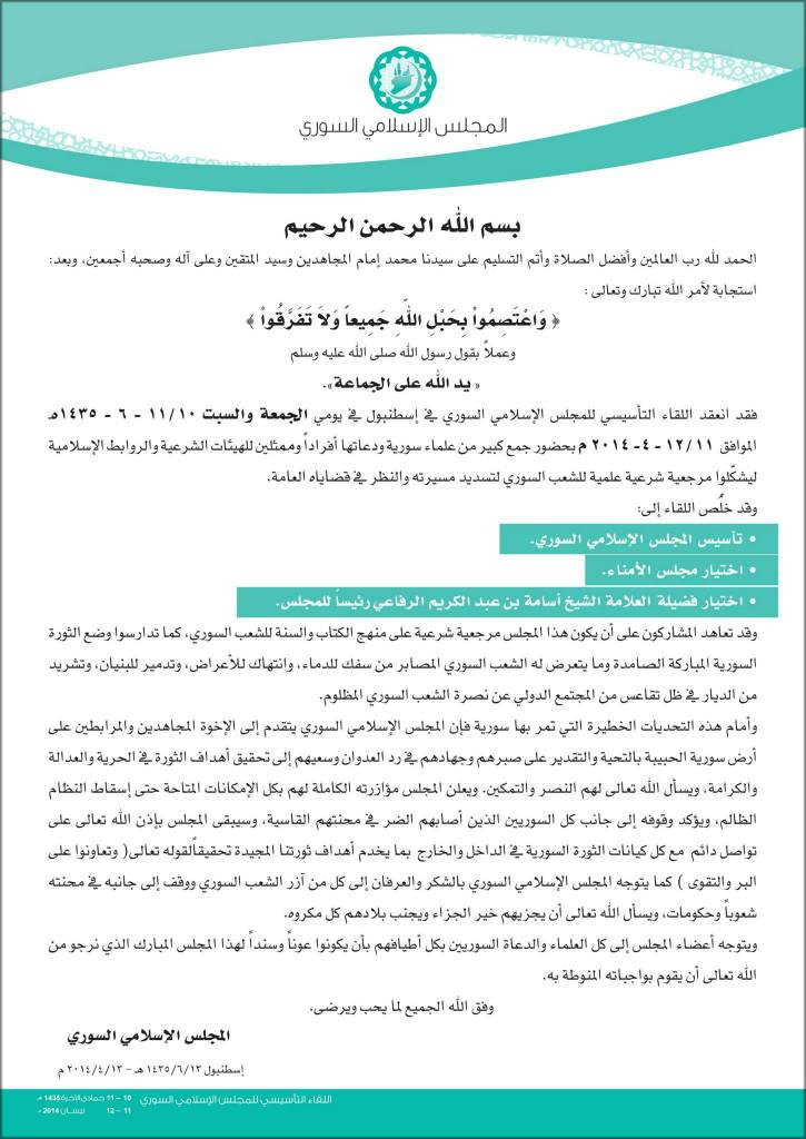 (البيان التأسيسي للمجلس الإسلامي السوري)