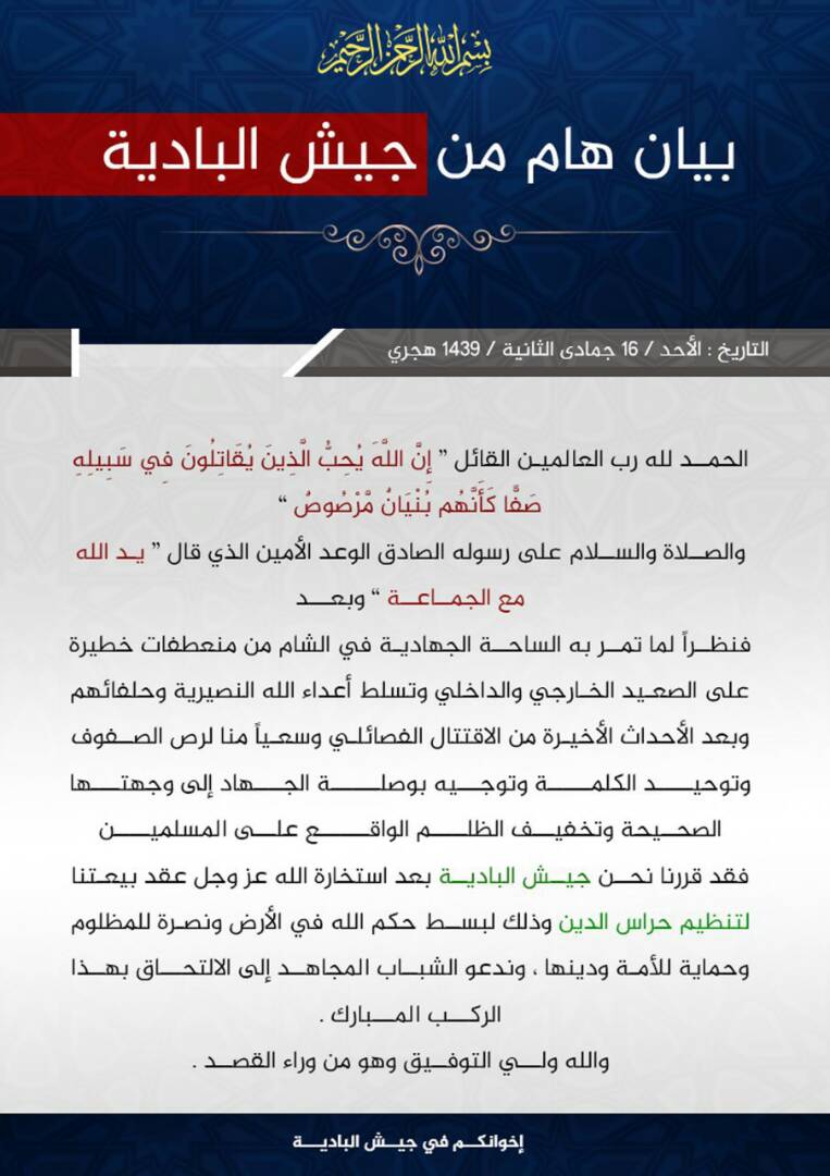 وعلى الرغم من أنّ المطالب التي ذكرها التنظيم الوليد في بيانه مطالب مشروعة، وهي أولى أولويات ساحة الجهاد في سورية الآن، إلا أنّ صدورها من أحد تنظيمات الغلو لا يبشّر بخير!