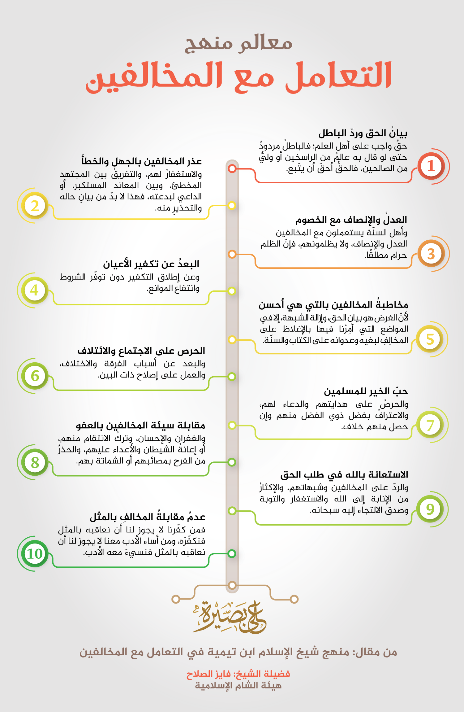 ويمكن أن نختصر معالم منهج الشيخ في التعامل مع المخالفين بأصلين عظيمين: بيان الحق، ورحمة الخلق.