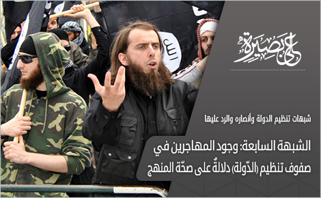 شبهات تنظيم الدولة وأنصاره والرد عليها: الشبهة السابعة: وجود المهاجرين في صفوف تنظيم (الدّولة) دلالةٌ على صحّة المنهج