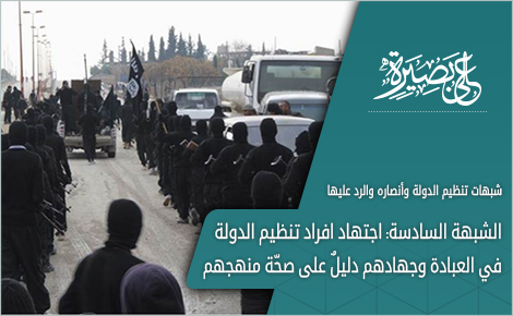 شبهات تنظيم الدولة وأنصاره والرد عليها: الشبهة السادسة: اجتهاد افراد تنظيم الدولة في العبادة وجهادهم دليلٌ على صحّة منهجهم